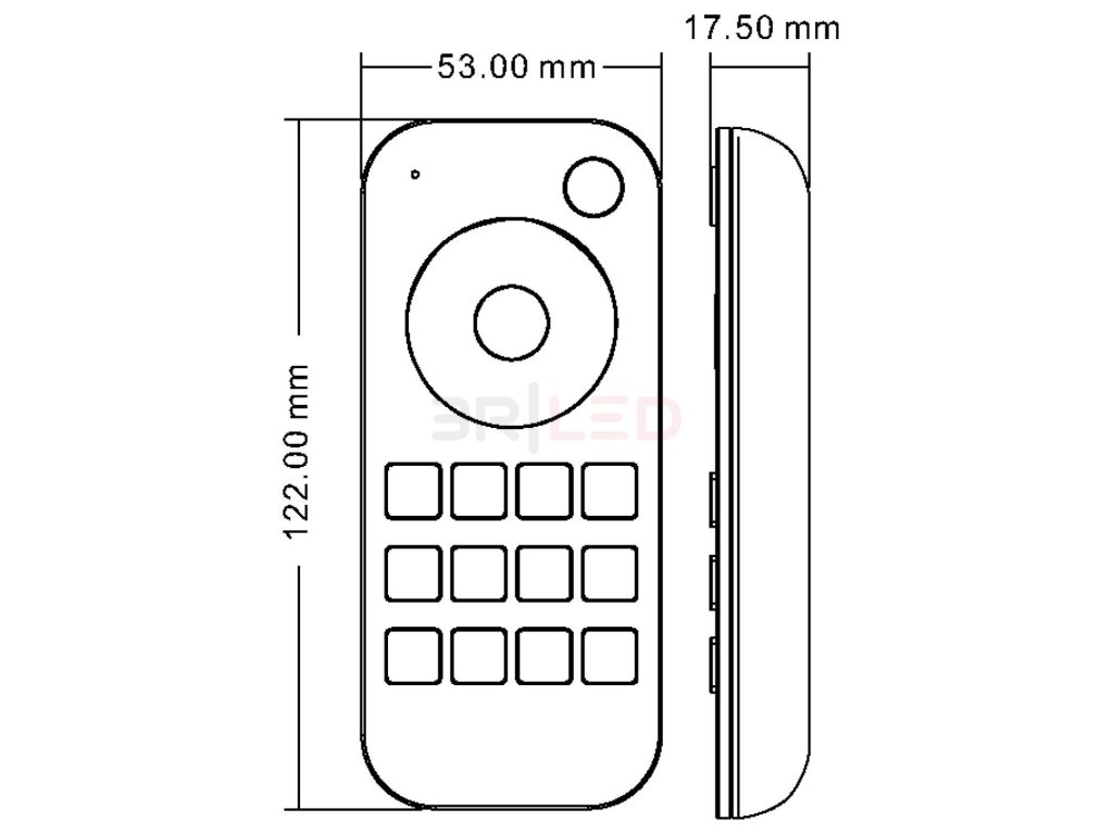 Ovladač pracuje na frekvenci 2,4 GHz a poskytuje dosah až 30 metrů. Stupeň krytí IP20 značí, že je určen pro vnitřní použití. Ovladač je kompatibilní s neomezeným počtem přijímačů, což umožňuje flexibilní nastavení v různých prostorách. Napájení zajišťuje baterie AAA, která nabízí dlouhou výdrž. Ovladač má kompaktní rozměry 122×53×17,5 mm a splňuje certifikace CE a ROHS, což garantuje kvalitu a bezpečnost při používání.