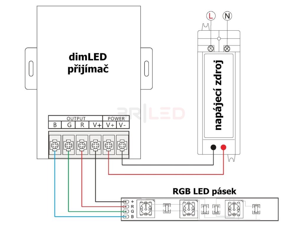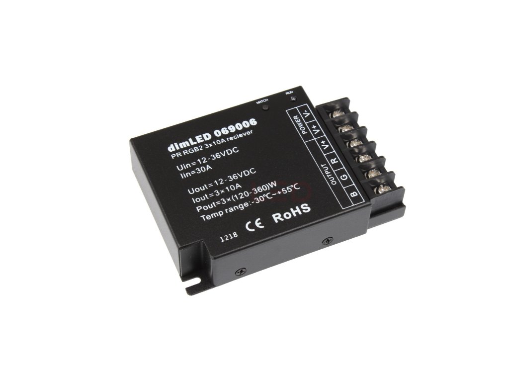 dimLED přijímač pro 1barev./CCT/RGB LED pásky, 12-36V, 3x10A, 120W/240W/360W