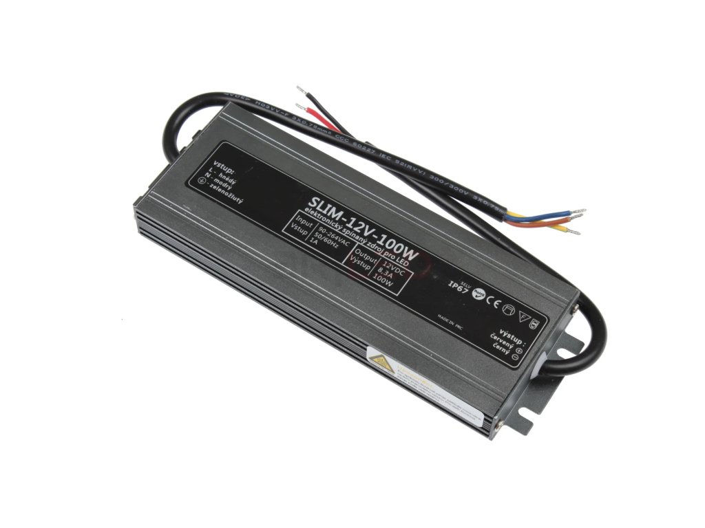 LED napájecí zdroj 12V, 100W, 8,5A, IP67, SLIM