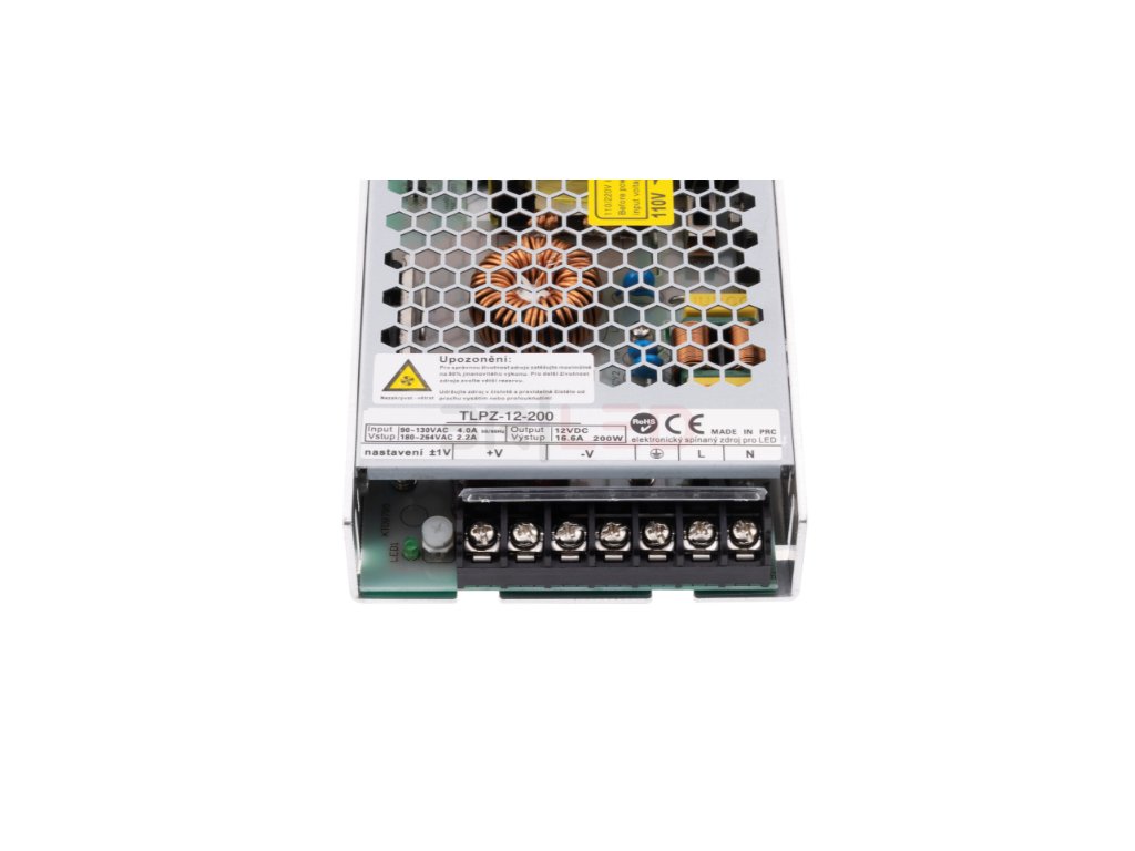 LED napájecí zdroj 12V / 200W je výkonný elektronický spínaný zdroj určený pro LED pásky a LED osvětlení s maximálním výkonem 200W.