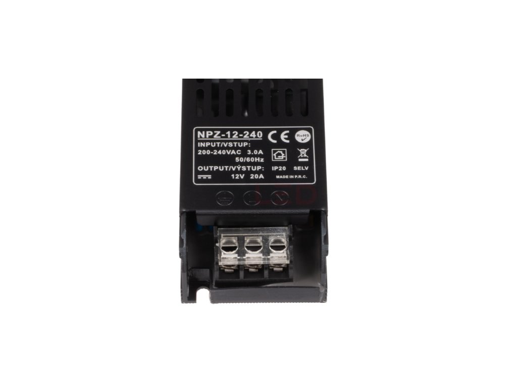 LED napájecí zdroj 12V / 240W je spolehlivý a výkonný elektronický zdroj určený pro LED pásky a světelné zdroje s maximálním výkonem 240W.