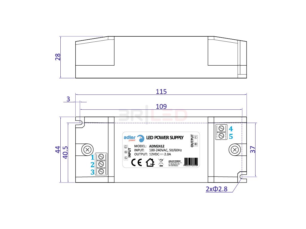 Výkon: 24W  |  Výstupní napětí: 12V DC  |  Proud: 2A