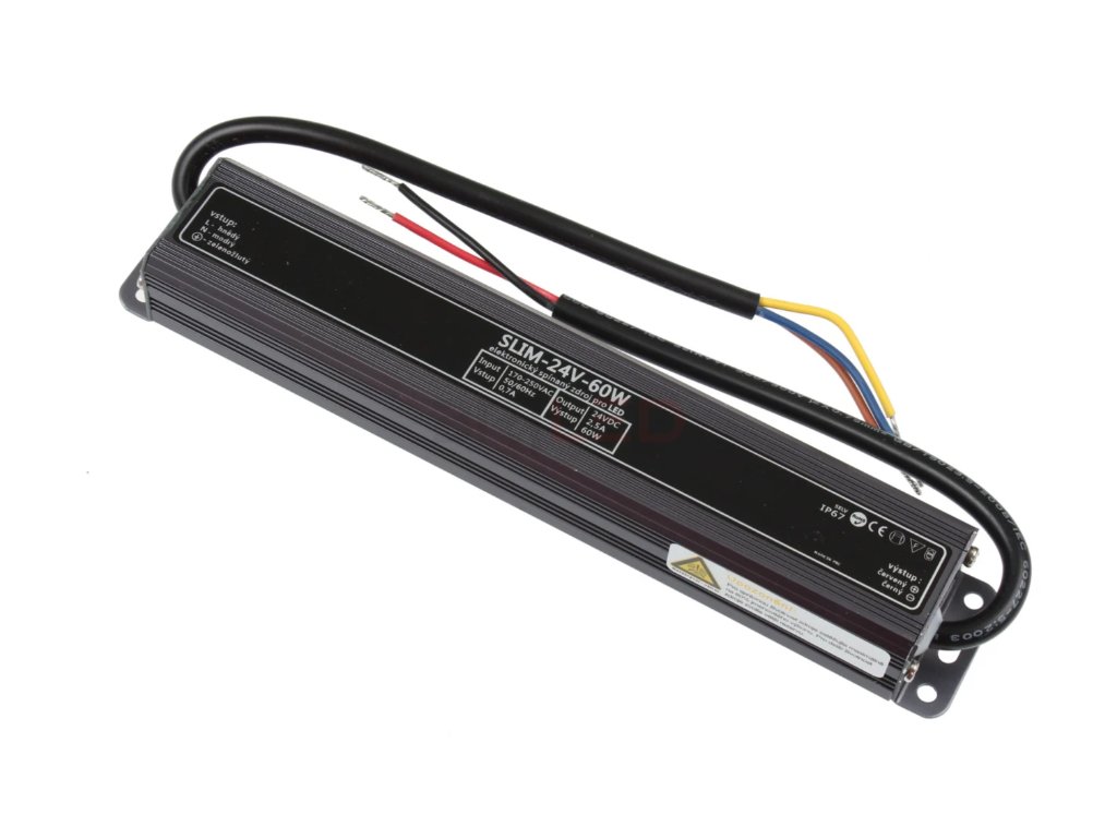 LED napájecí zdroj 24V, 60W, 2,5A, voděodolný, IP67, SLIM