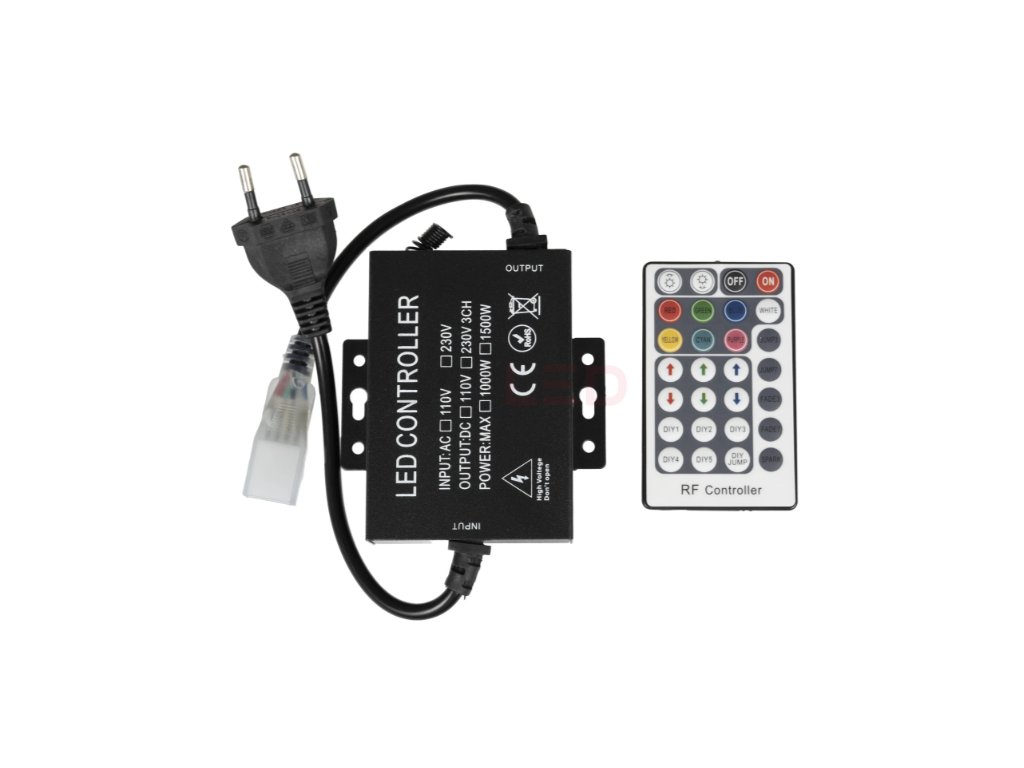 LED ovladač RGB 230V je výkonné řešení pro radiofrekvenční ovládání RGB LED pásků napájených 230V. Nevyžaduje přímou viditelnost a umožňuje skrytou montáž přijímače například za stěnu nebo nábytek. Určen výhradně pro síťové LED pásky – není kompatibilní s 12V!