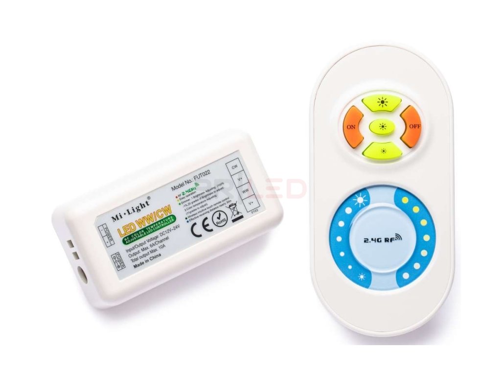 LED stmívač pro CCT pásky je moderní RF Touch ovladač s přijímačem, určený pro CCT LED pásky, které obsahují diody teplé i studené bílé. Tento systém umožňuje plynulou regulaci jasu, zapnutí/vypnutí a nastavení barevné chromatičnosti pomocí dotykového prstence nebo tlačítek.