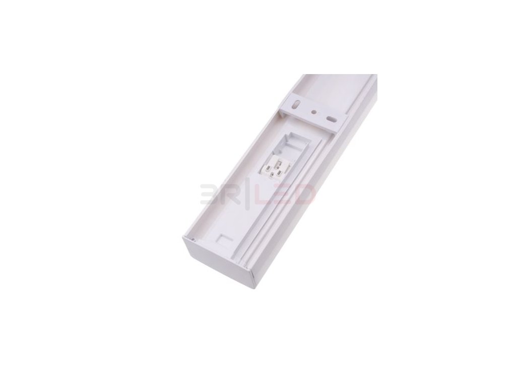 Moderní lineární LED svítidlo s kompaktním designem a mléčným difuzorem zajišťuje rovnoměrné osvětlení pro chodby, sklady a kuchyňské linky.