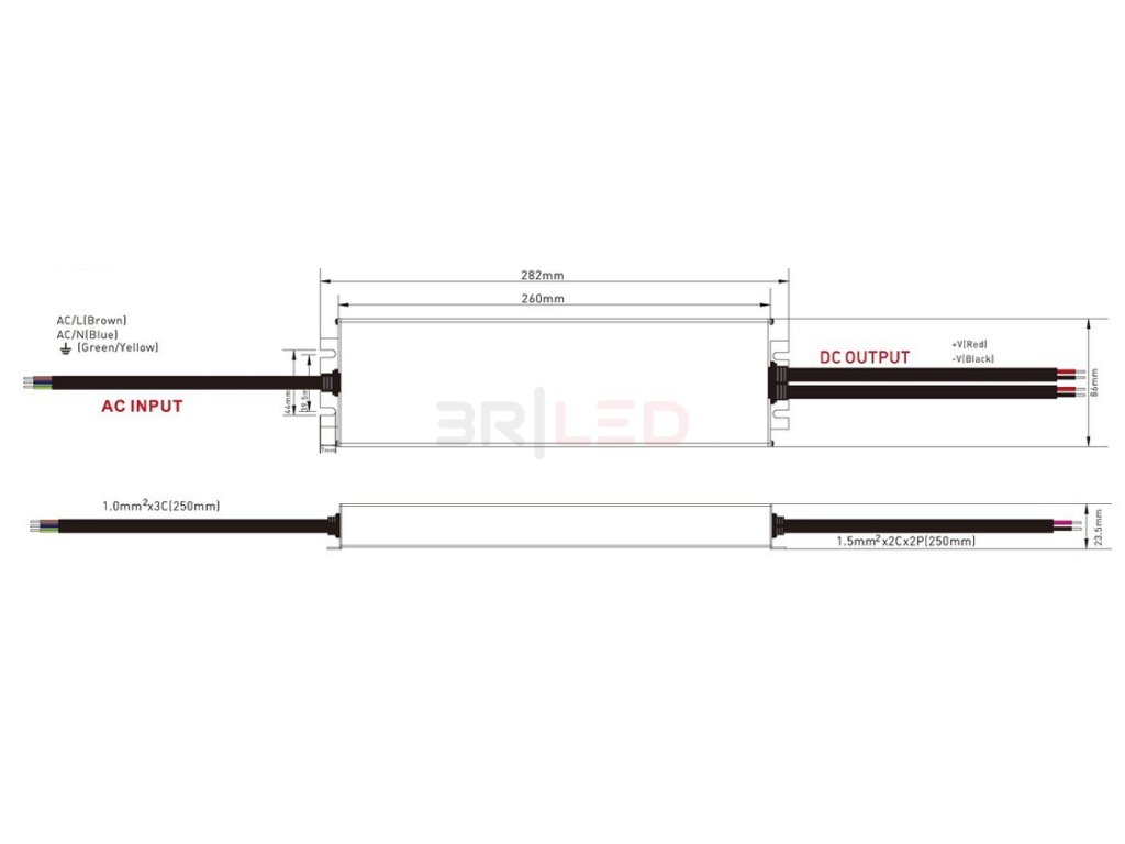 LED zdroj splňuje certifikace CE a ROHS a je navržen pro dlouhodobý a stabilní provoz. Díky širokému provoznímu rozsahu teplot od -30° do +50°C je vhodný i pro náročné podmínky. Vysoká účinnost, robustní konstrukce a spolehlivé bezpečnostní ochrany činí z tohoto zdroje ideální volbu pro venkovní osvětlení, reklamní panely i průmyslové aplikace.