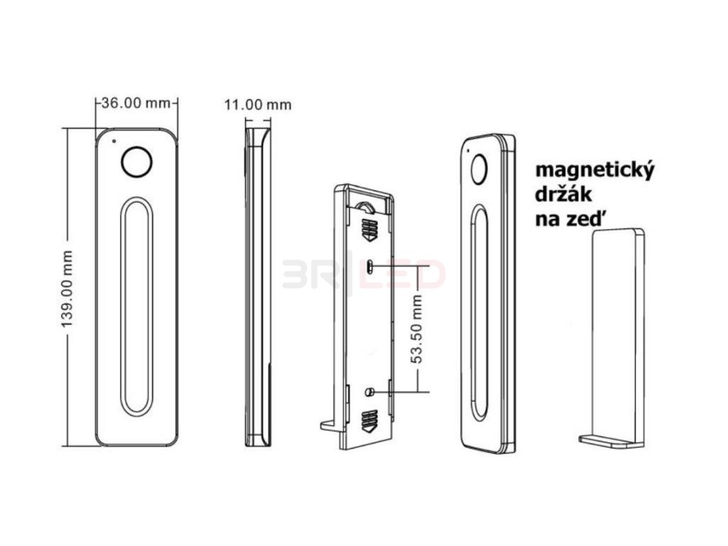 Napájení: baterie CR2032 (3V)  |  Krytí: IP20  |  Součástí balení: magnetický držák na zeď