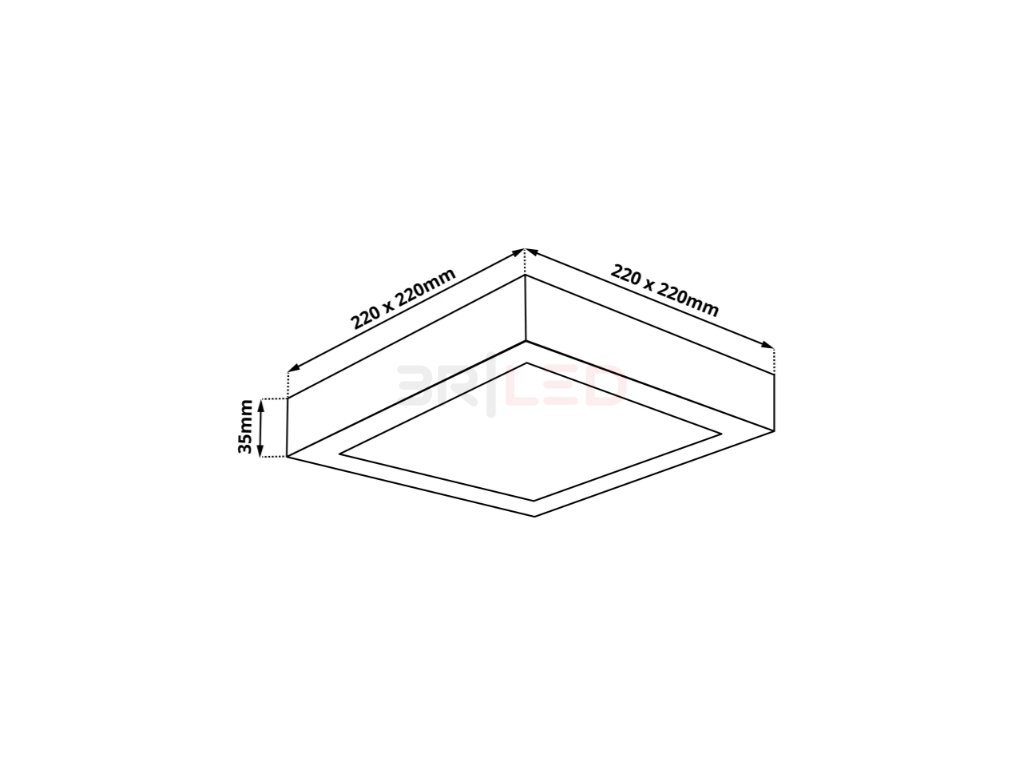 Materiál: Hliník/plast  |  Rozměry: 220x220x35 mm