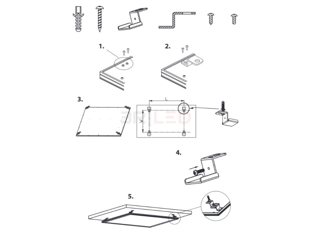 Montážní sada 6ks háčků pro zavěšení LED panelů pod strop s distanční mezerou pro umístění zdroje. (Součástí balení je také spojovací materiál: hmoždinky a šrouby) Doporučený počet háčků dle rozměru LED panelu: Panel 300x300: 2 až 4 háčky Panel 600x600: 4 háčky Panel 1200x300: 6 háčků