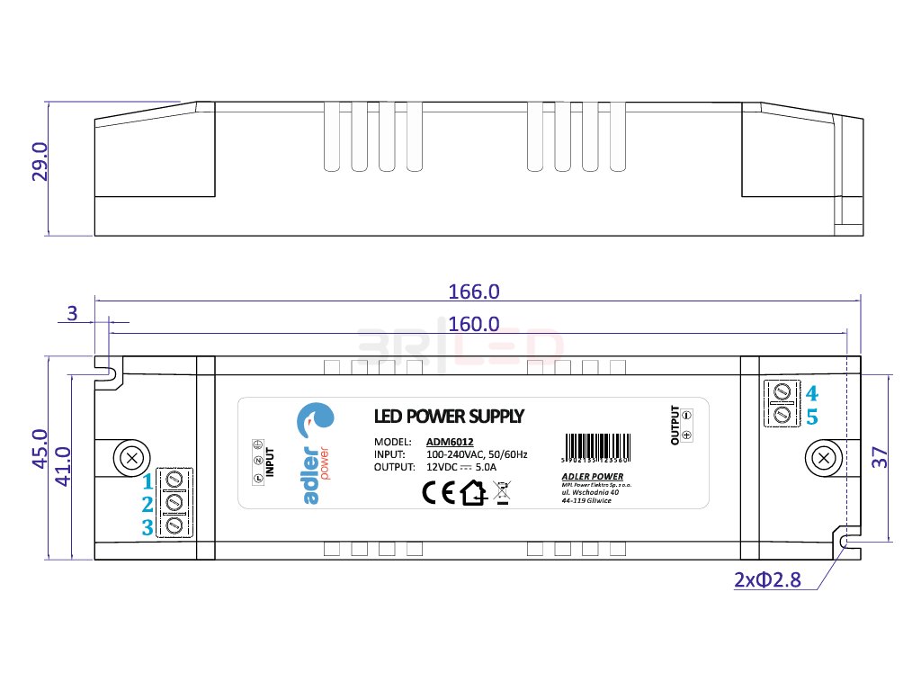 Výkon: 60W  |  Výstupní napětí: 12V DC  |  Proud: 5A