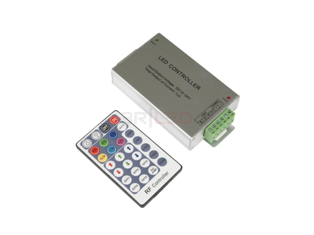 Tento radiofrekvenční ovladač umožňuje dálkové ovládání RGB LED pásků a jejich jasu, barevných přechodů a rychlosti změn. Přijímač může být ukrytý, protože RF technologie nevyžaduje přímou viditelnost mezi ovladačem a přijímačem, což umožňuje čistou a diskrétní instalaci.