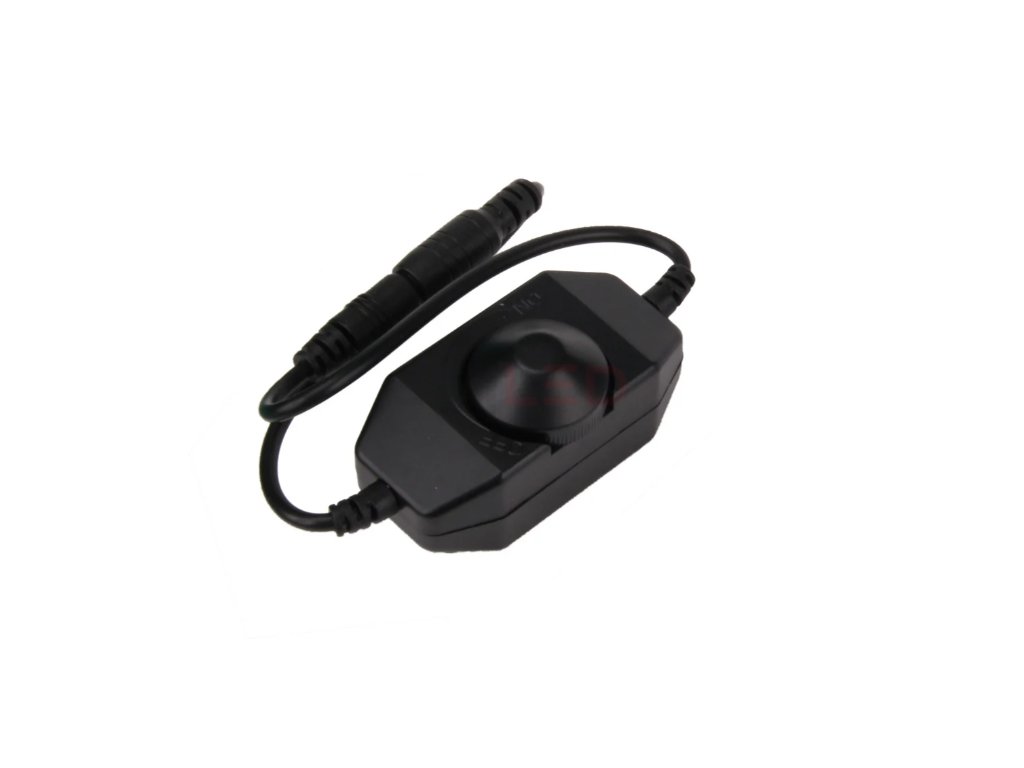 Stmívač jednokanálový manuální pro ovládání intensity jasu a vypínačem LED pásků, žárovek 12V a jednobarevných modulů. Možnost výběru ze dvou barev - bílá a černá Vstupní napětí: 12-24V DC Zatížení: <2A (24W při 12V) Připojení: vstup/výstup - nízkonapěťový konektor Rozměry: 61×33×32mm