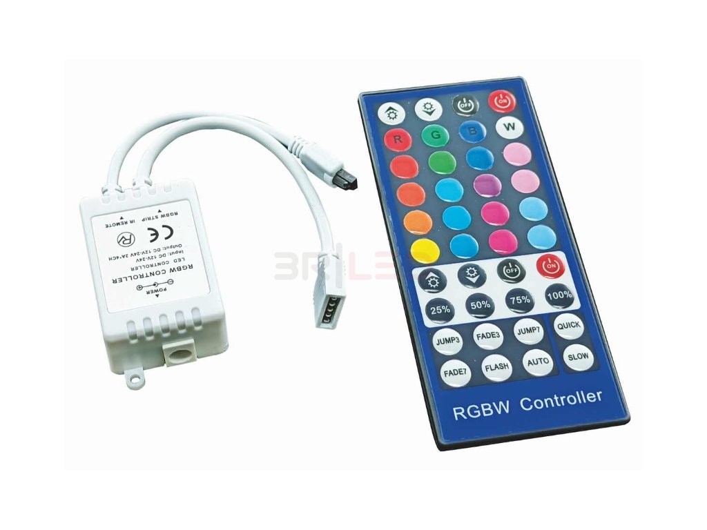 Tento bezdrátový LED kontroler je určen pro ovládání RGBW LED pásků. Umožňuje dálkové přepínání barev a efektů prostřednictvím infra ovladače, který nabízí pohodlné a intuitivní ovládání. Kontroler je vybaven paměťovou funkcí, která po výpadku nebo odpojení napájení automaticky obnoví poslední nastavenou barvu a režim.