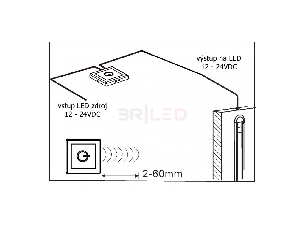 Napětí: 12V–24V DC  |  Ovládání: IR senzor  |  Montáž: Skříňový spínač