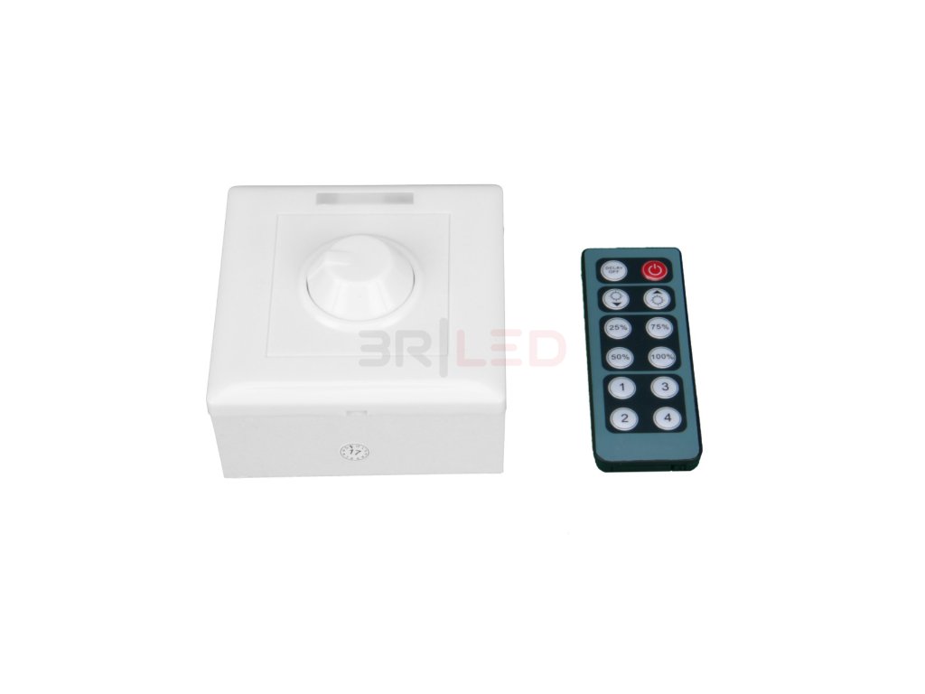 Jednokanálový LED stmívač umožňuje plynulou regulaci jasu LED pásků, LED modulů a stmívatelných LED žárovek pomocí otočného regulátoru nebo IR dálkového ovladače. Kombinuje flexibilní ovládání přímo na stmívači i pohodlí bezdrátového řízení na dálku.