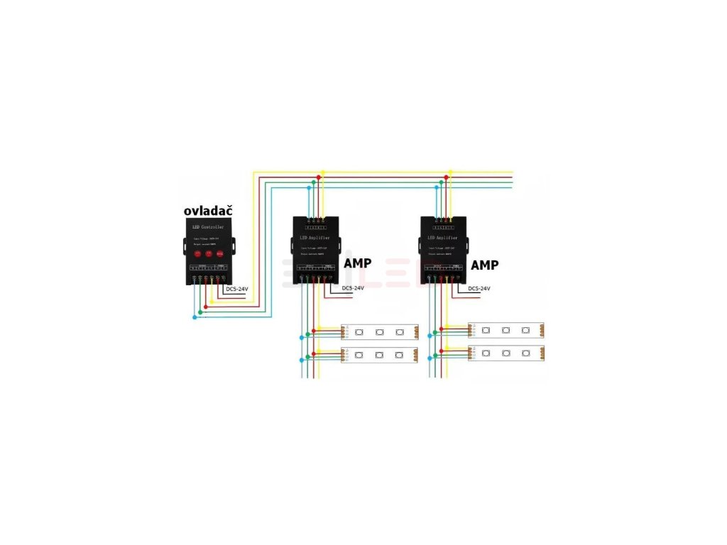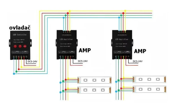 Ideální pro RGB LED pásky, ale lze použít i pro jednobarevné LED pásky. V případě jednobarevného použití je třeba proklamovat vstupní RGB svorky (spojit). Výstupy musí být zapojeny samostatněvýstupy se nesmí propojit mezi sebou.